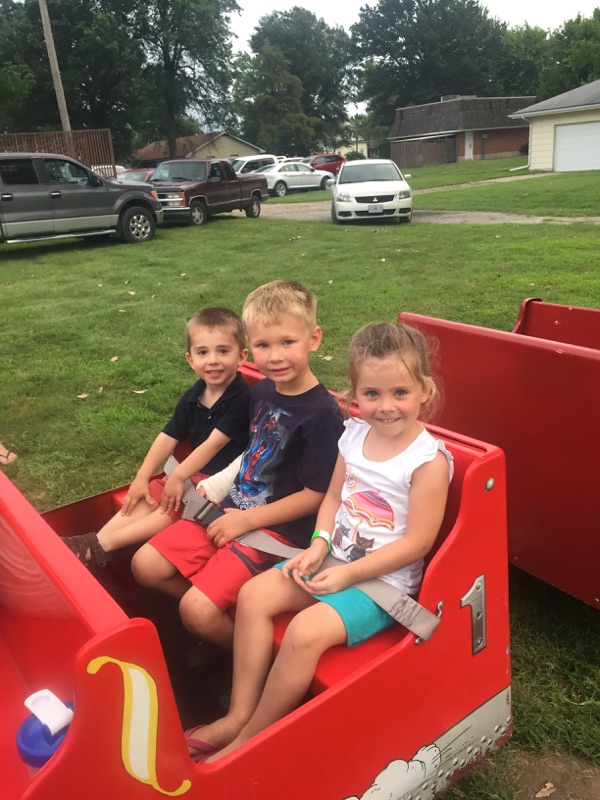 Sunday was church and then work around the house. I did a lot of weeding in my garden and my tomatoes are starting to ripen up. The girls and I drove the go-cart down the road to check out a car that wrecked Friday night. We don't think anyone was seriously injured, but please slow down on gravel roads!!!